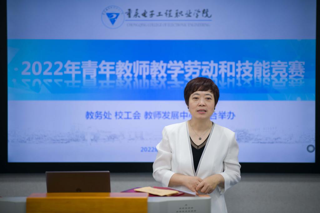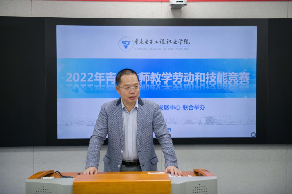 为进一步提升广大青年教师的教学能力和业务水平,做好重庆市第六届重庆市高校青年教师教学劳动和技能竞赛的选拔推荐工作,5月15日,由我校教务处、校工会、教师发展中心联合举办的重庆电子工程职业学院2022年青年教师教学劳动和技能竞赛在学校智慧教室14栋301进行。学校党委副书记龚小勇,副校长、工会主席谢义华、教务处处长童世华、工会常务副主席唐莉、教师发展中心主任廖世萍、教务处副处长张慧敏作为嘉宾出席比赛现场。本次比赛特邀重庆邮电大学通信学院院长王汝言教授,重庆交通大学李海峰教授,全国第四届高校青年教师全国教学竞赛工科组第一名获得者、重庆大学陈科副教授担任评委。