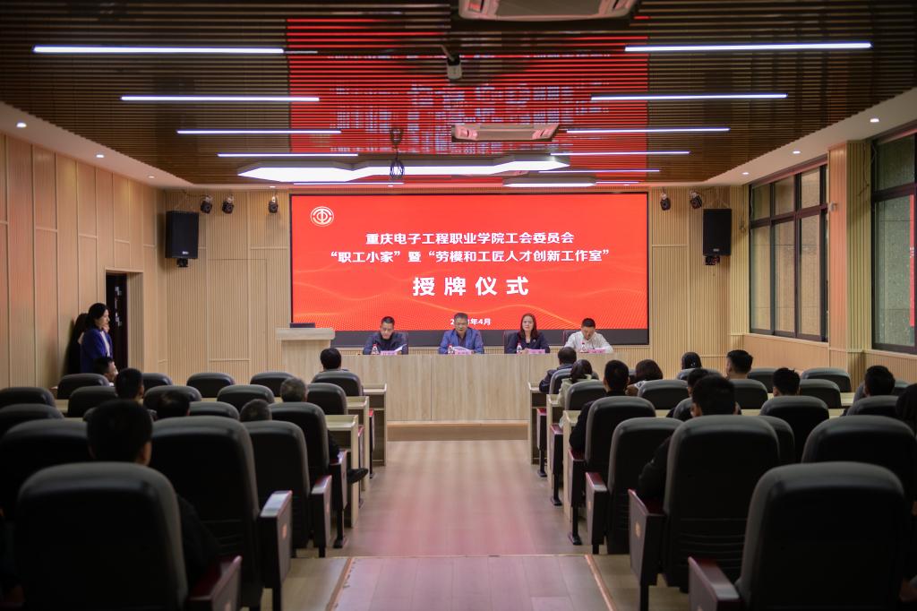会上还向工会系统“劳模和工匠人才创新工作室”授牌。近年来,我校工会积极开展“劳模和工匠人才创新工作室”创建工作,旨在弘扬劳模精神、劳动精神、工匠精神,充分发挥劳模和工匠人才在学校人才培养、科技创新、师德建设和专业建设中的示范引领和骨干带头作用,开展技术培训、业务交流、师带徒等“传帮带”活动,推动和带领广大教职工成为创新型人才,激励广大职工在学校“强基升本”建设中建功立业。仪式上,冉学农副校长、唐莉常务副主席和吕义清副主席为获得学校工会系统“劳模和工匠人才创新合格工作室”的陈良技能大师物联网创新工作室(领衔人:陈良)、武春岭劳模信息安全创新工作室(领衔人:武春岭)、主动健康与老龄化科技应对创新工作室(领衔人:谢光辉)、朱游兵劳模汽车车身维修技术创新工作室(领衔人:朱游兵)、电商运营与数字营销创新工作室(领衔人:董征宇)、汽车三维数字化设计创新工作室(领衔人:张俊峰)六个工作室授牌。