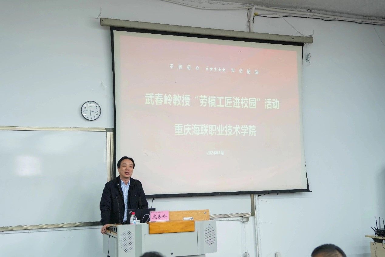 2024年1月18日下午,时任47届世界技能大赛网络安全赛项中国专家组长的重庆市先进工作者武春岭教授,刚从北京参加完网络安全赛项集训启动仪式,就被重庆海联职业技术学院以重庆市劳模和大师身份邀请到校,为全体教师做了一场高质量的“劳模工匠进校园”报告会,报告持续了一个半小时,有300多名教师聆听了报告,整个过程气氛热烈,掌声不断。