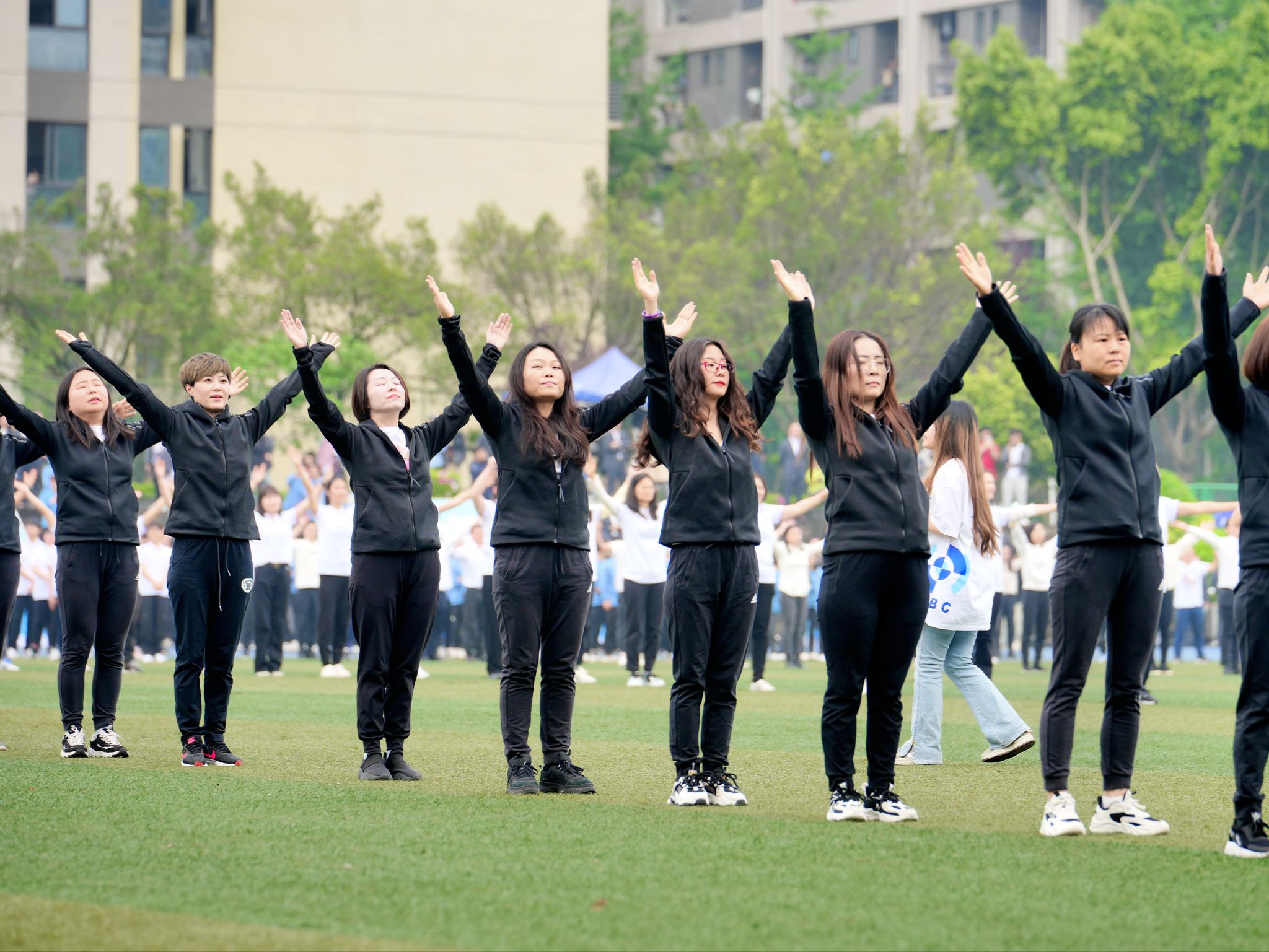 开幕式后,分工会教职工代表列队展示了第九套广播体操。
