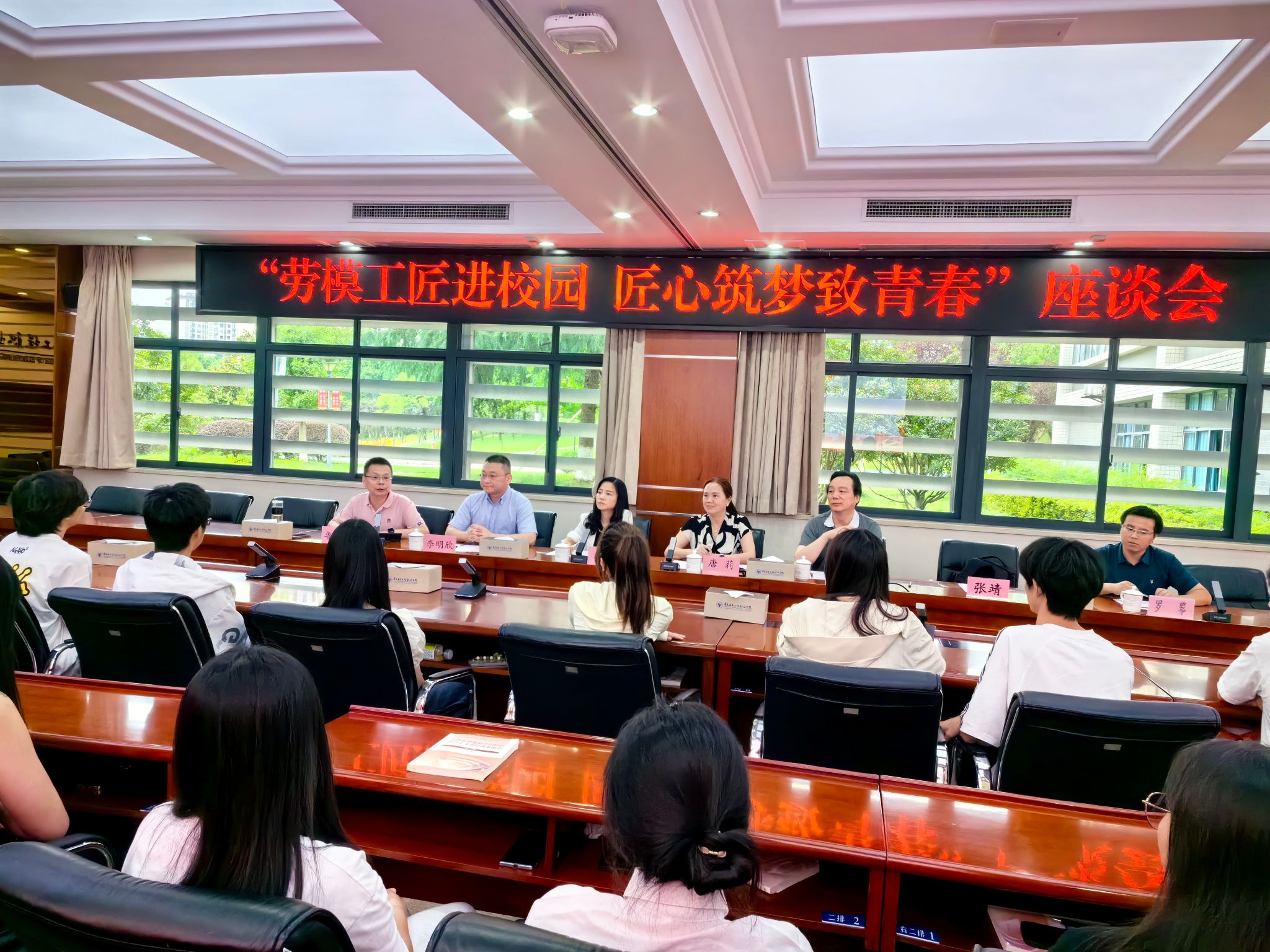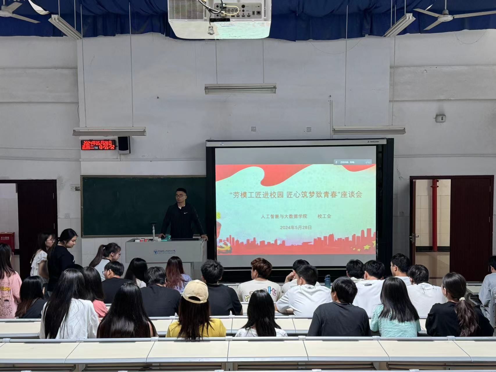2024年5月28日下午,学校工会、人工智能与大数据学院联合举办“劳模工匠进校园•匠心筑梦致青春”的劳模工匠进校园宣讲座谈会。宣讲座谈会特别邀请了我校“重庆市先进工作者”劳模武春岭教授、鲁先志教授和重庆市劳模中国联通重庆市分公司科技创新部总经理兼网络与信息安全部总经理李明欣参加座谈,此次宣讲座谈会也是学校工会与企业工会联手承办的“劳模工匠进校园”活动。