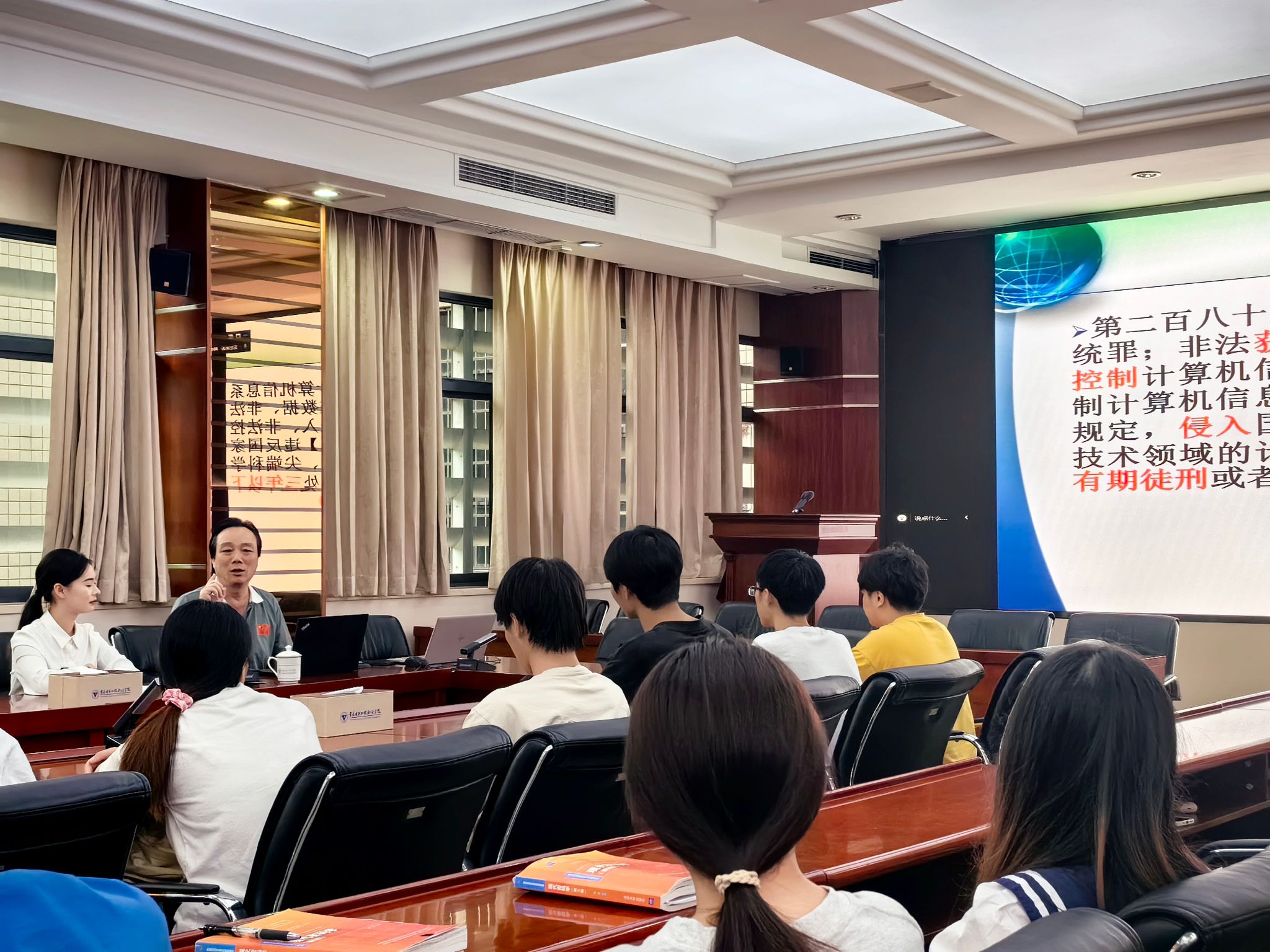 最后人工智能与大数据学院院长武春岭教授做网络安全法、网络安全与国家安全讲座。讲座涉及网络安全法和数据安全法等相关内容,警示同学们正确使用网络,构建良好网络环境,牢记国家安全。