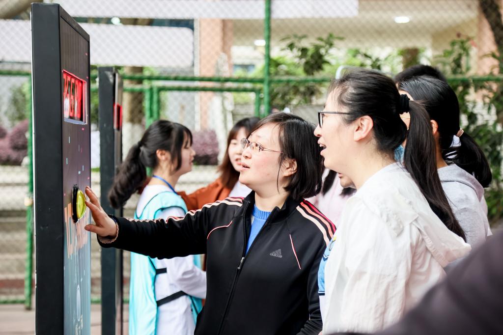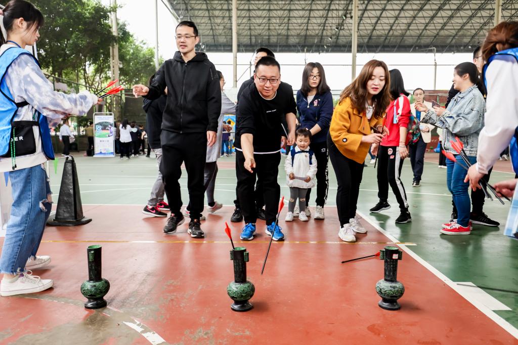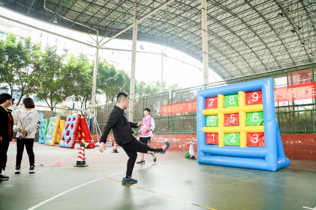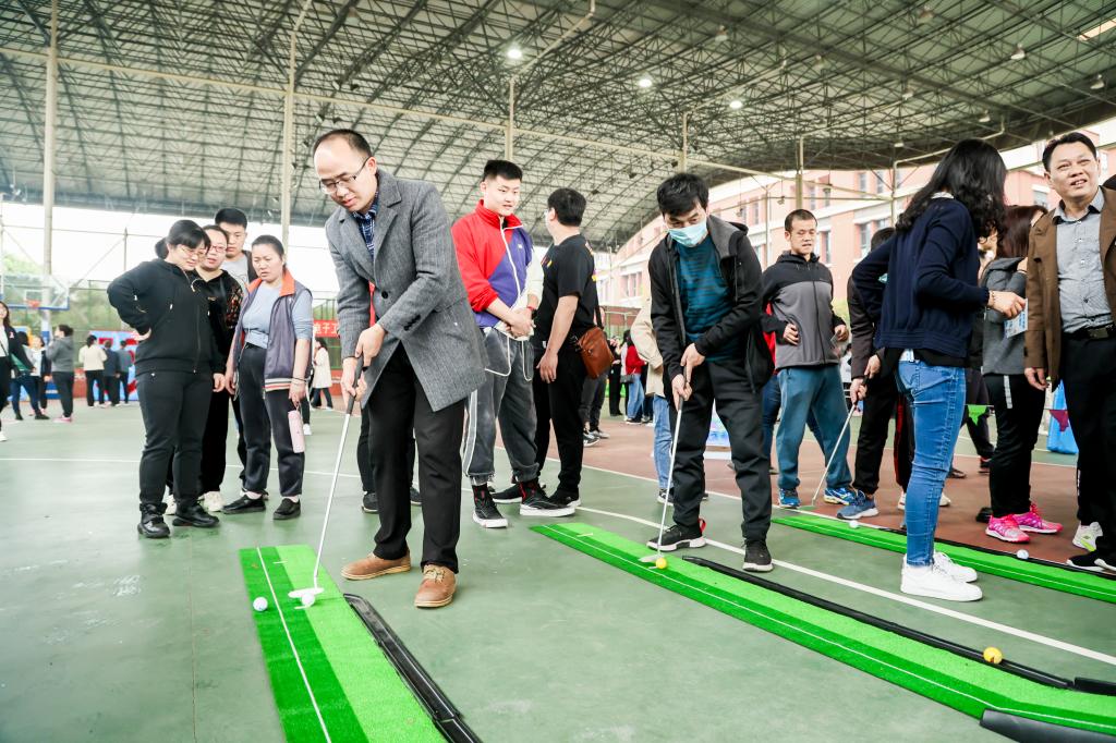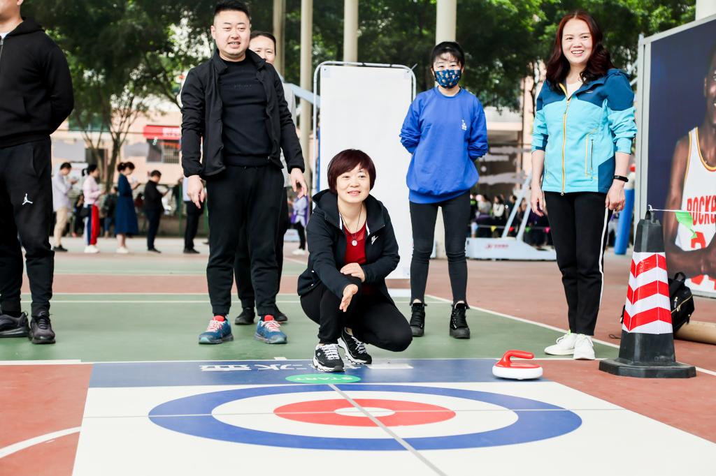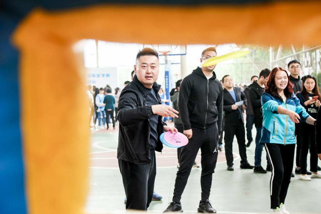 开幕式后,教职工积极参与了各个项目的运动。在趣味飞盘、趣味投壶、趣味高尔夫、九宫射门、趣味套圈、旱地冰壶、趣味投篮、挑战10秒等各个项目场地,人头攒动,笑声连连,教职工们在运动中愉悦了身心,享受了运动的乐趣。