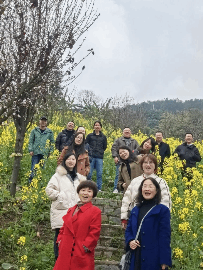 在春游环节,老师们赏着春日的美景,呼吸着清新的空气,感受着大自然的魅力。大家结伴而行,谈笑风生,共同享受着这份难得的闲暇时光。一片金黄色的油菜花,足以让大家完全忽略早春的几分寒意,漫游其中,时而驻足、时而嬉闹、时而拍拍照......通过春游活动,放松了老师们的身心,增进了彼此之间的交流与沟通,也增强团队友谊和凝聚力。