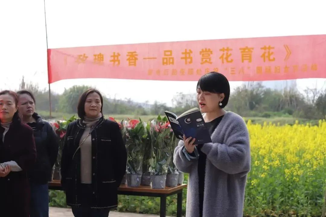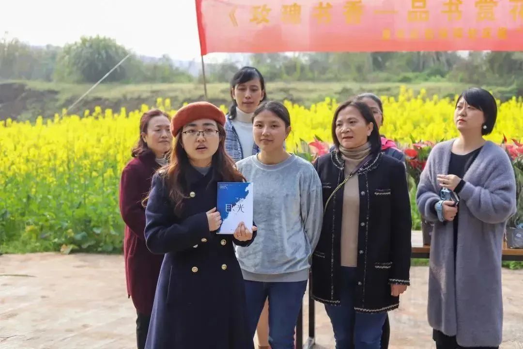拥有“得天独厚”条件的后勤保障处分工会,在他们管理的“重电花园”旁边,在黄灿灿油菜花田旁边,染满身金黄,阅万卷诗书,来了一场“玫瑰书香——品书赏花育花”活动,领读老师向大家推荐了经典书籍,鼓励大家从书中获取温暖和力量。